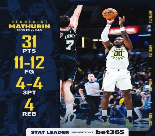 本场比赛,马瑟林首发出战23分钟,投篮12中11,三分4中4,罚球5中5,得到31分4篮板1助攻1抢断,正负值+11。