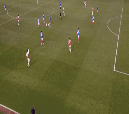 上半场结束,阿森纳2-1暂时领先。下半场开始仅仅6分钟,热苏斯就助攻马丁内利梅开二度。第72分钟,马丁内利上演帽子戏法。