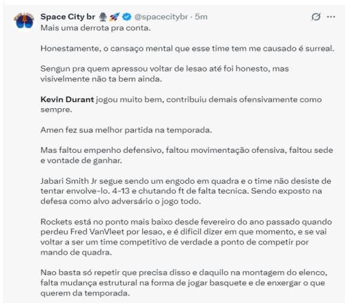 一位火箭球迷认为球队煞费苦心的交易得到杜兰特,最终战绩还不如上赛季的太阳,太搞笑。