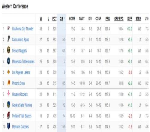 随着火箭队一波三连败,太阳队一波三连胜,太阳24胜13负,火箭22胜14负,太阳反超火箭成为西部第六,而火箭则跌入附加赛成为西部第七。